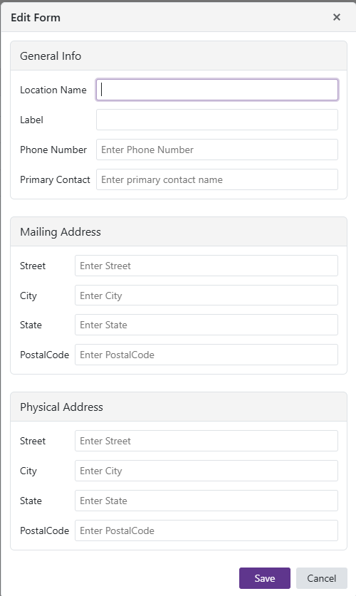 When you've completed the form, click ‘Save’ to finalize and create the new location.