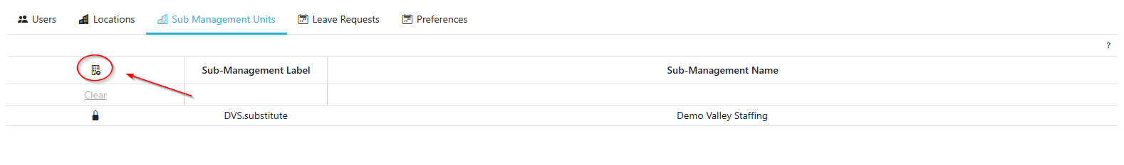 icon to begin adding a new Sub-Management Unit.