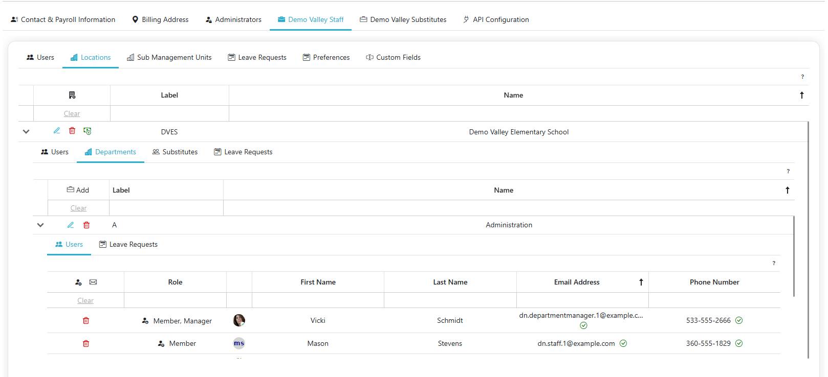 Path 2: Regular Staff->Manage Regular Staff->Locations->Departments-> ’>’ (Caret)->Users
