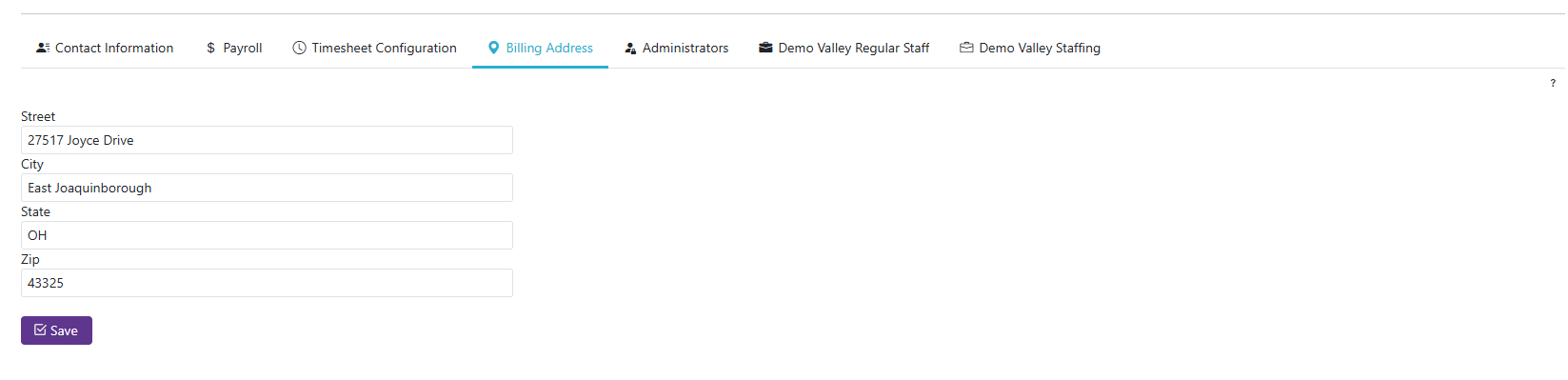 Billing Address - The Billing Address tab allows users to view and edit the billing address associated with their account. - The user must click the ‘Save’ button in to save any edits