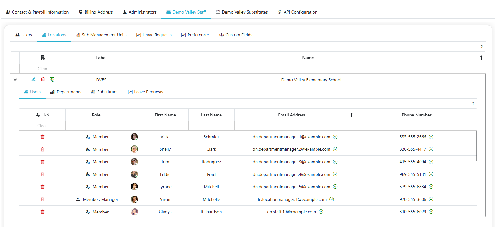 - The Users section allows administrators/managers to manage users assigned to a specific location. Administrators/managers can add, remove, or promote users as necessary.