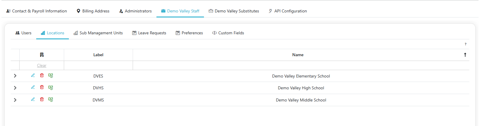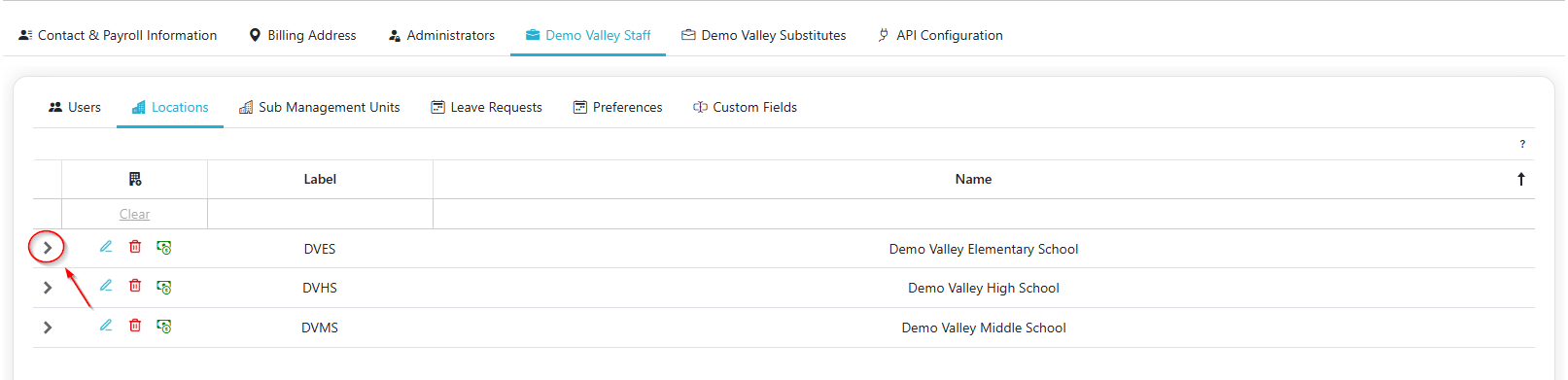 Expand Location To View Location's Users, Departments, Substitutes, Leave Requests