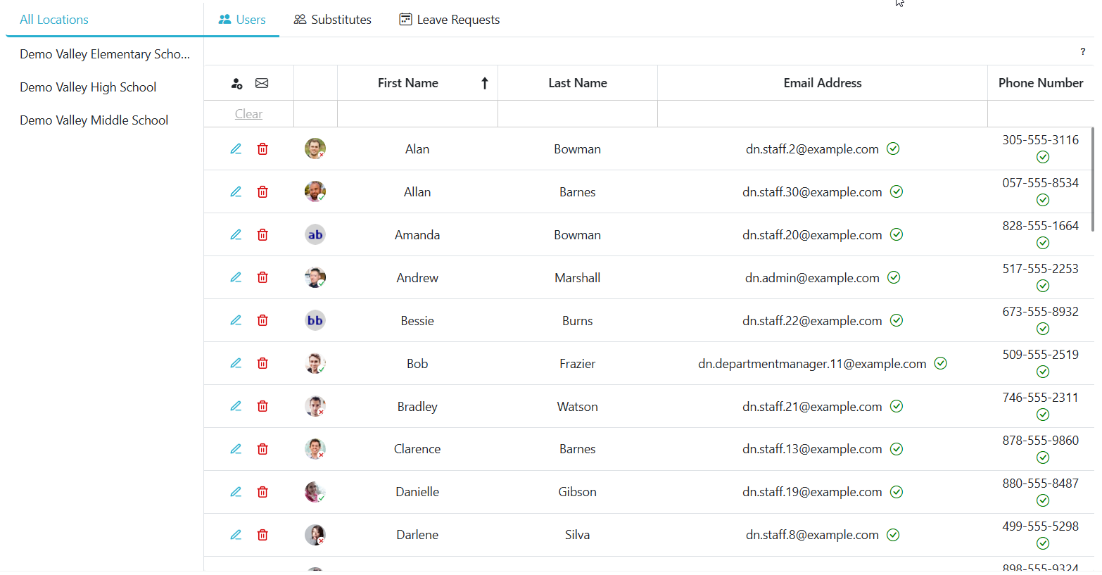 - The Users section allows administrators/managers to manage users assigned to multiple locations. Administrators/managers can add, edit, and remove users from multiple locations