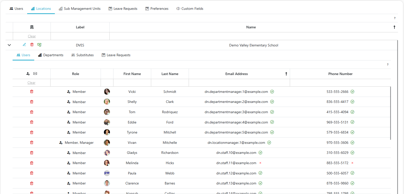 - The Users section allows administrators/managers to manage users assigned to a specific location. Administrators/managers can add, remove, or promote users as necessary.
