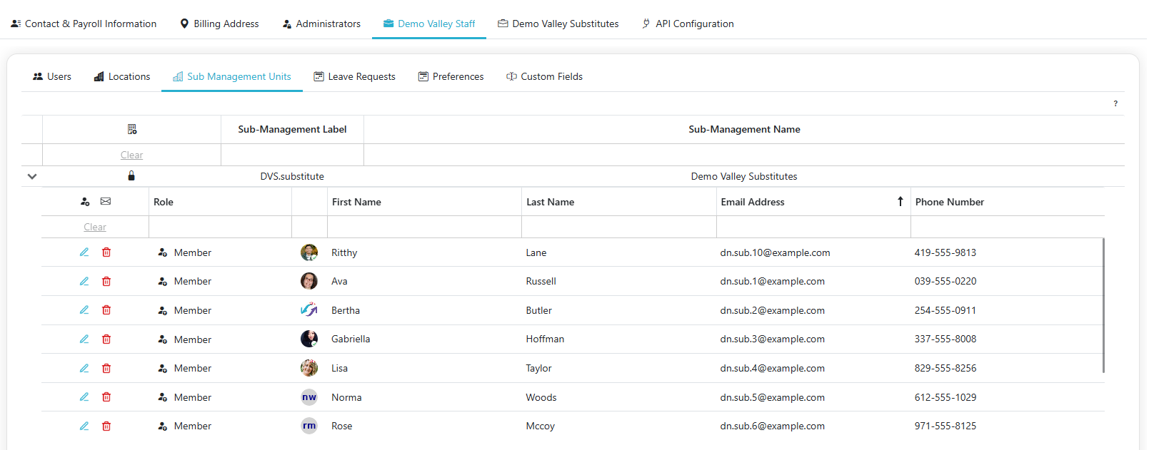 - The Sub-Management Units section allows users to manage sub-management units for the Regular Staff, including adding and removing units as needed.