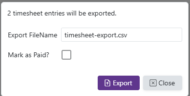 button and choose a filename and if you would like to mark these entries as 'Paid'