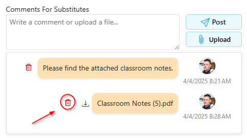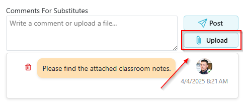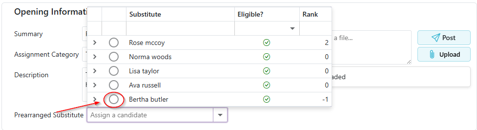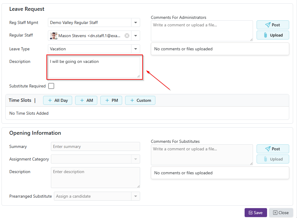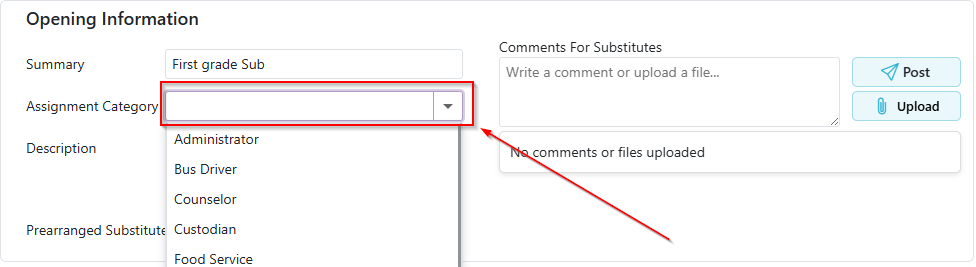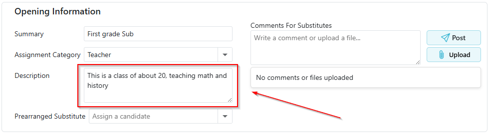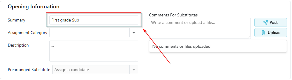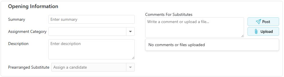 e. (Optional) Add any Comments or Attachments specific to the Opening (works the same as Step 7, except these are Comments for the Opening and will be visible by the substitutes).