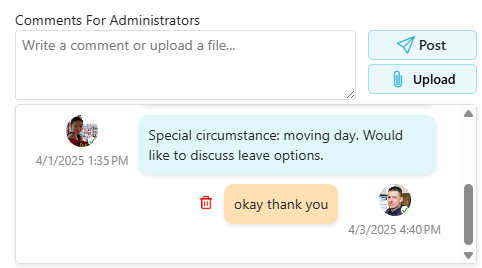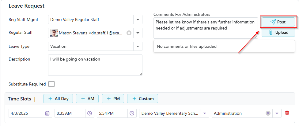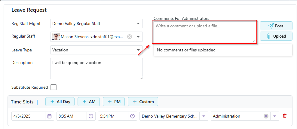 Step 7 (Optional): Add Comments And/Or Attachments to the Leave Request