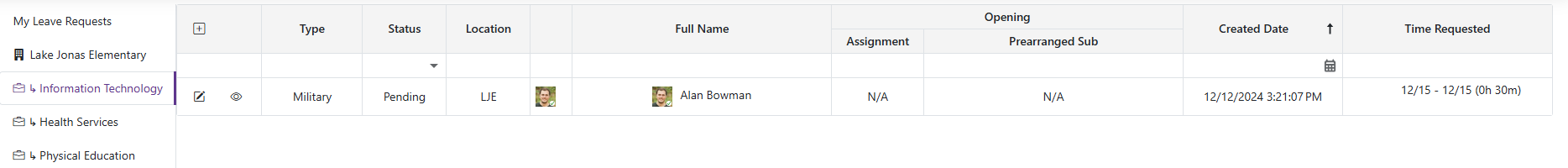 Path 1: Location Admin->Manage Location->Departments-> ‘>’(Caret)-> Leave Requests
