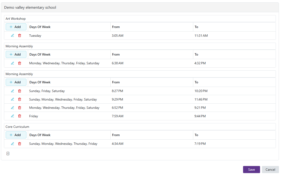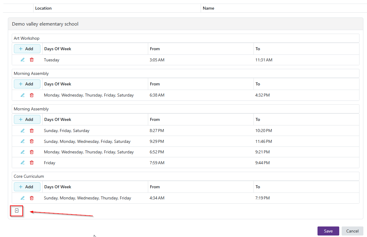- Clicking the Edit Icon will open up the schedule(s) for that location.