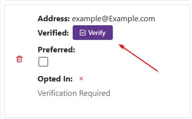 Step 1: Click 'Verify' next to the Email Address you want to verify.