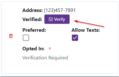 Step 1: Click Verify next to the Phone Number you want to verify.