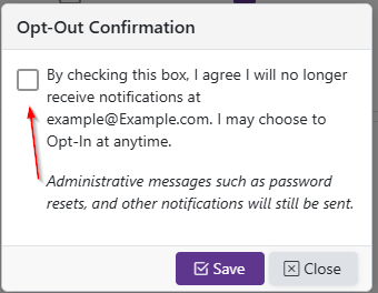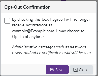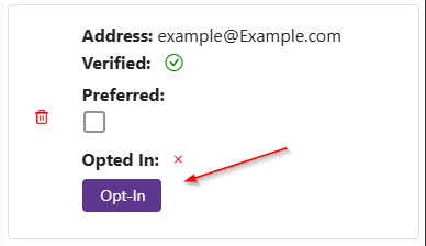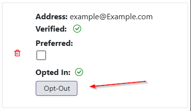 Step 1: Click the Opt-Out button for the Notification Method you wish to disable and stop receiving notifications.