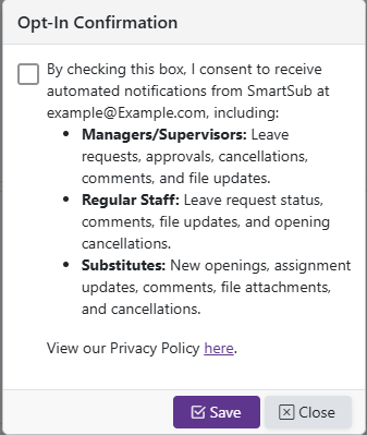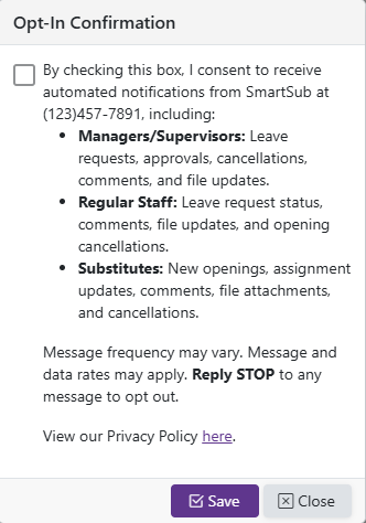 Opt-Out Message Popup Opt-Out Message Popup Phone